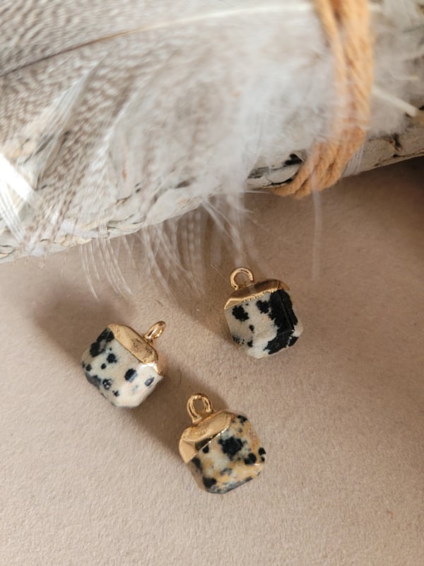 Mooi hangertje van Dalmatier Jaspis afgewerkt met een goudkleurige coating.